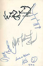 管理人所有の上2冊のうち片方には作者クリス、デイヴ、ニック、ベインブリッジ、ラントンの直筆サインが入っていました。 | HAWKWIND のネーミングは、やはりニックの愛称から取られたとのこと。由来は彼が頻繁に咳をして風を起すから。 1stアルバムのプロデューサー、ディック・テイラーはアルバムでも若干ギターをプレイ(FAMILY TREE にも記述ありましたね)、当時のギグでもプレイしていた。 |
